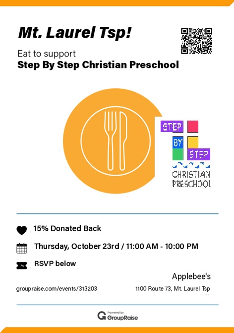 Each month, during the school year, Step by Step Preschool hosts a Dine and Donate Fundraiser at a different restaurant in the area. Here is how it works!